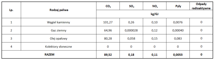 Wskaźniki emisji zanieczyszczeń dla produkcji energii cieplnej w roku 2025